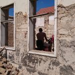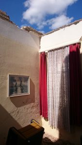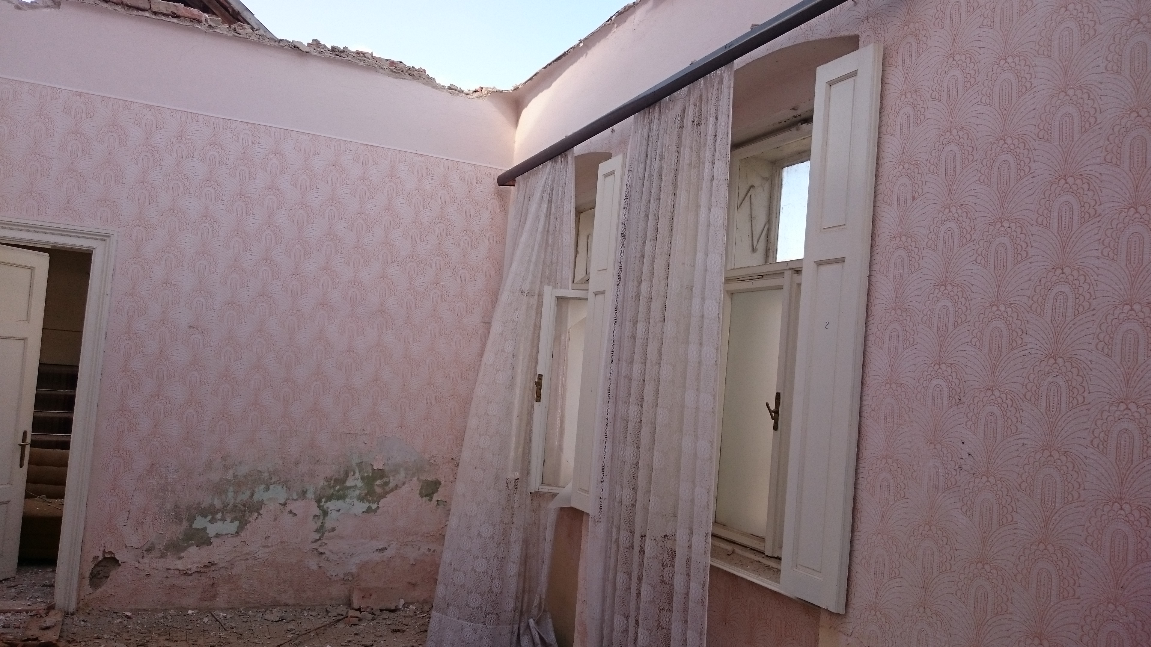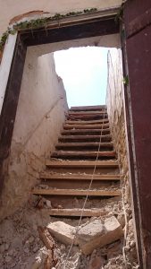 Übrig bleiben Freiluft-Räume, Stiegen in den Himmel und Vorhänge, die im Wind wehen.