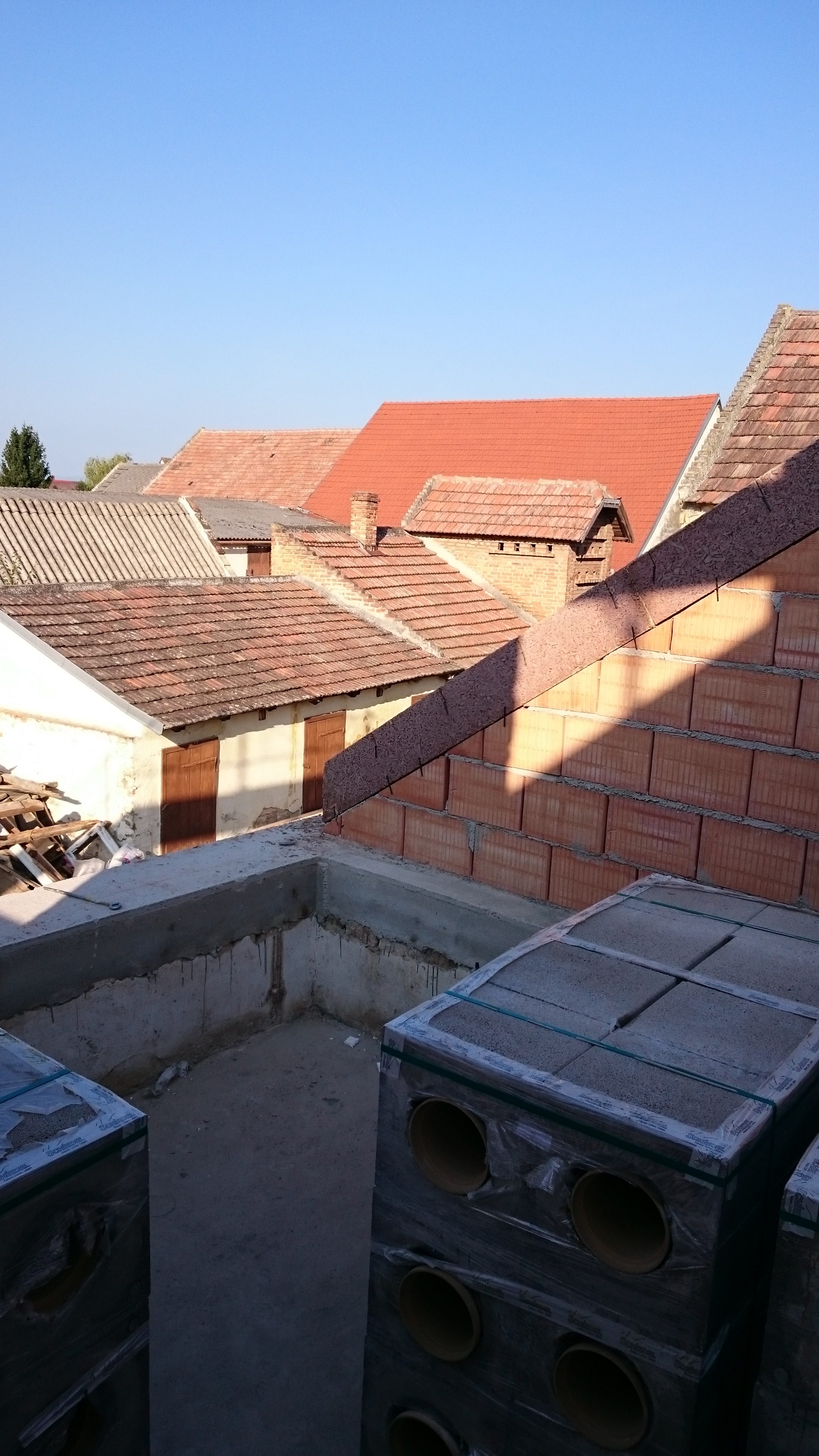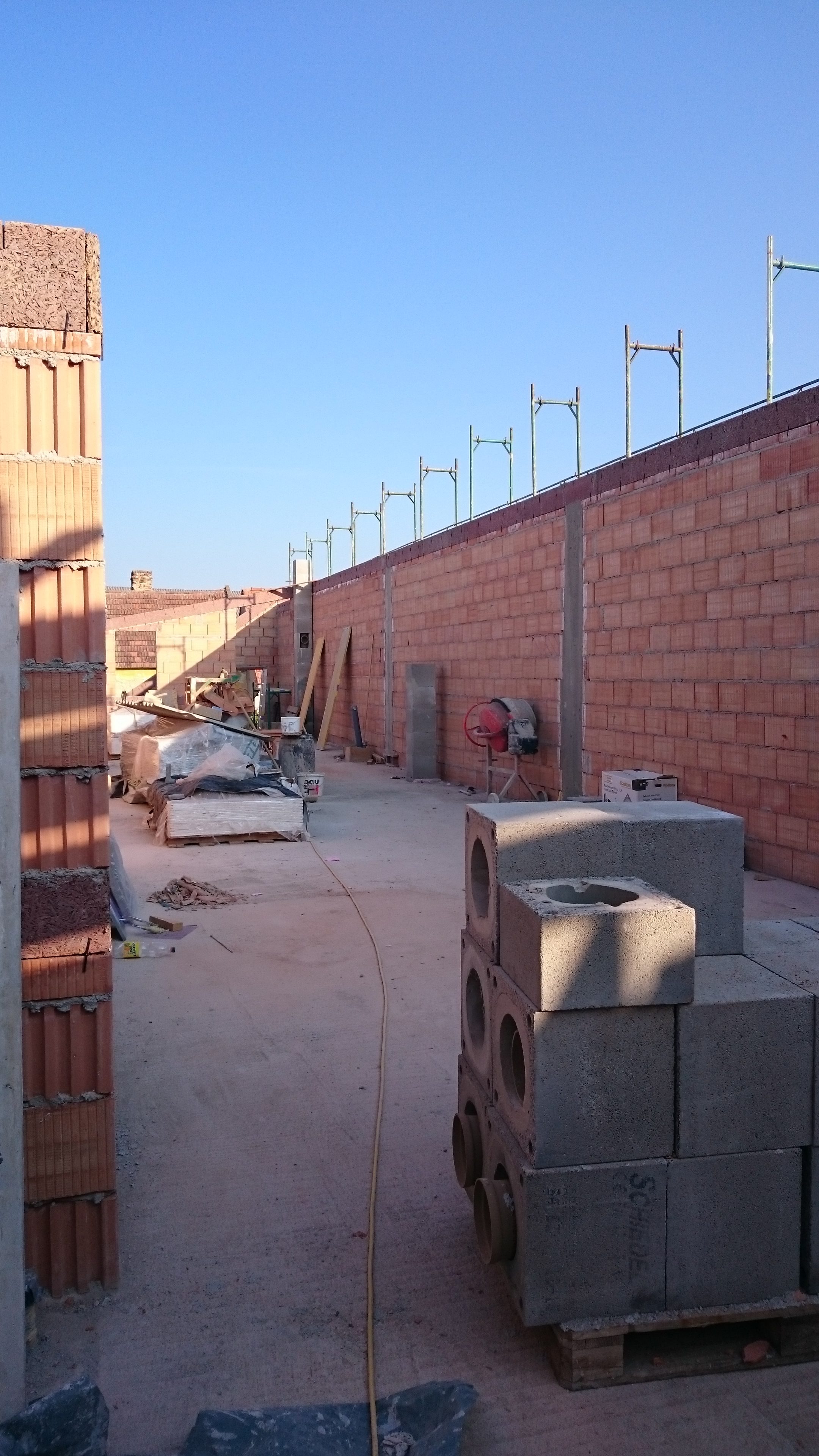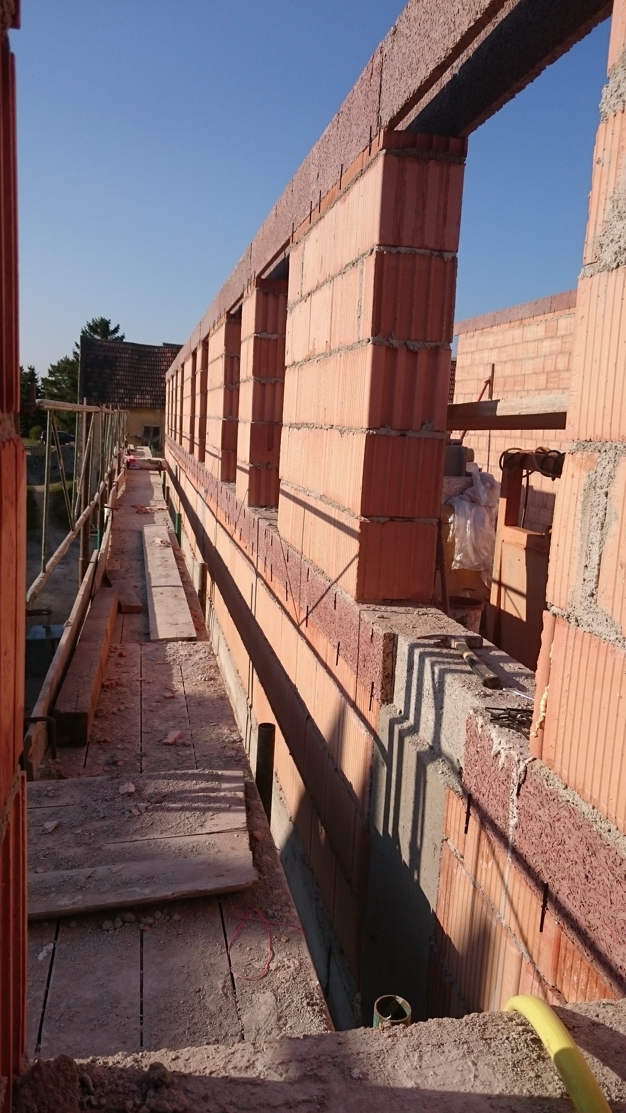 Nun, ganz so schnell geht es zwar nicht, aber die Außenmauern des Dachgeschosses wachsen doch schnell in die Höhe und bilden einen einzigen Raum, groß wie ein Tanzpalast (weil ja noch alle Zwischenwände fehlen)